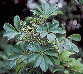 Cultivated in Chiba city, Japan Elev. 20m 278 シェフレラ・アルボリコラ 千葉県千葉市稲毛区 植栽 標高 20m Aug. 26, 2003 |